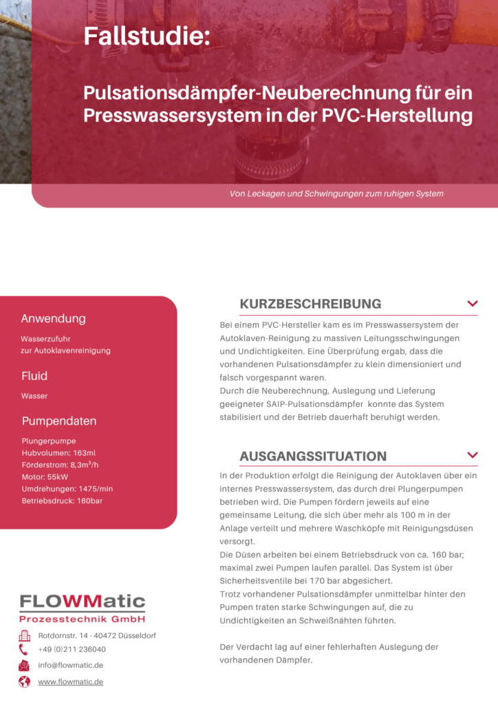 Bei einem PVC-Hersteller kam es im Presswassersystem der Autoklaven-Reinigung zu massiven Schwingungen und Undichtigkeiten.